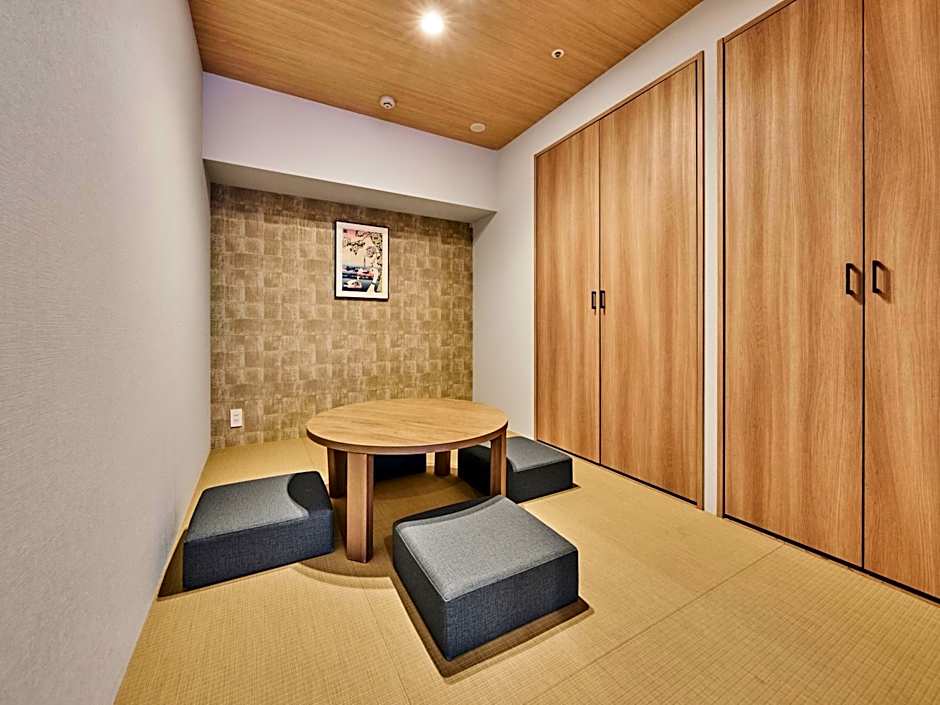 The spacious twin room provides air conditioning, tatami, as well as a private bathroom featuring a bath and a shower. In the well-equipped kitchen, guests will find a refrigerator, kitchenware, a microwave and an electric kettle. The twin room features carpeted floors, a seating area with a flat-screen TV, a private entrance, a dining area, as well as a wardrobe. The unit offers 3 beds and 2 futons.