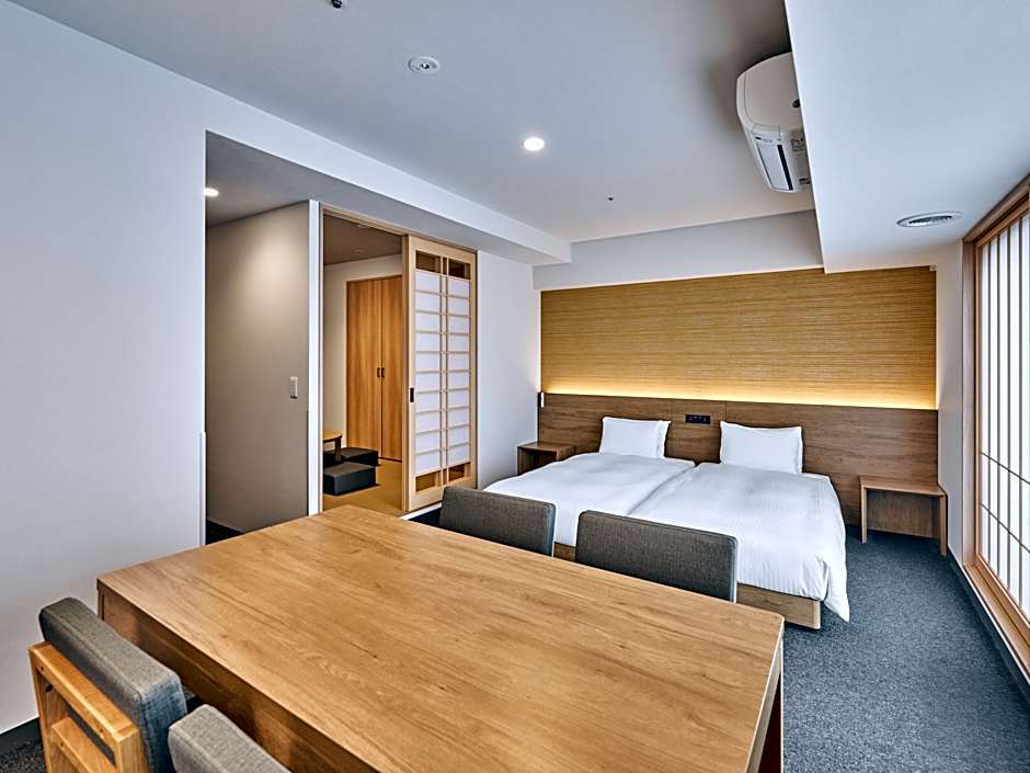The spacious twin room provides air conditioning, tatami, as well as a private bathroom featuring a bath and a shower. In the well-equipped kitchen, guests will find a refrigerator, kitchenware, a microwave and an electric kettle. The twin room features carpeted floors, a seating area with a flat-screen TV, a private entrance, a dining area, as well as a wardrobe. The unit offers 3 beds and 2 futons.